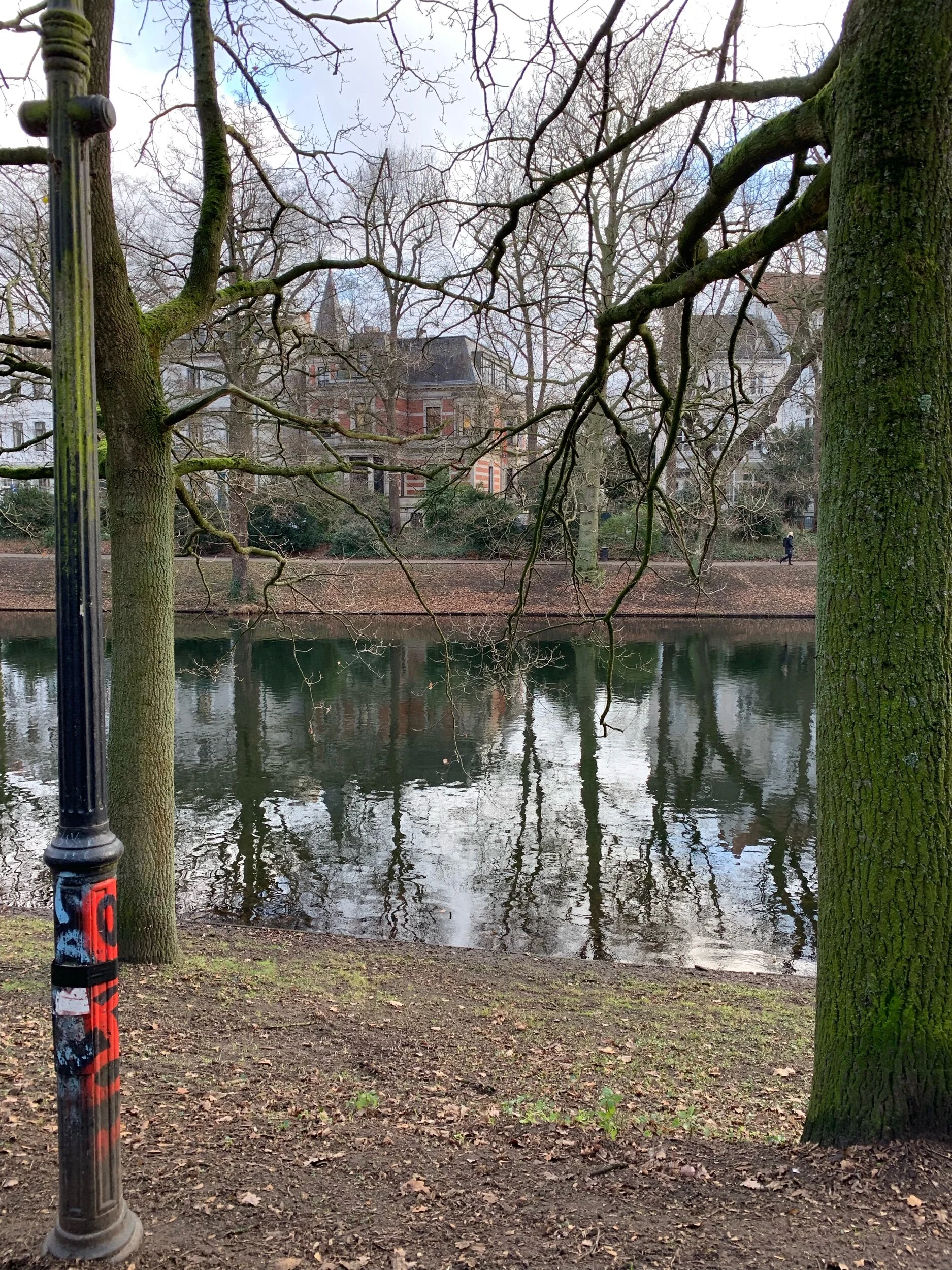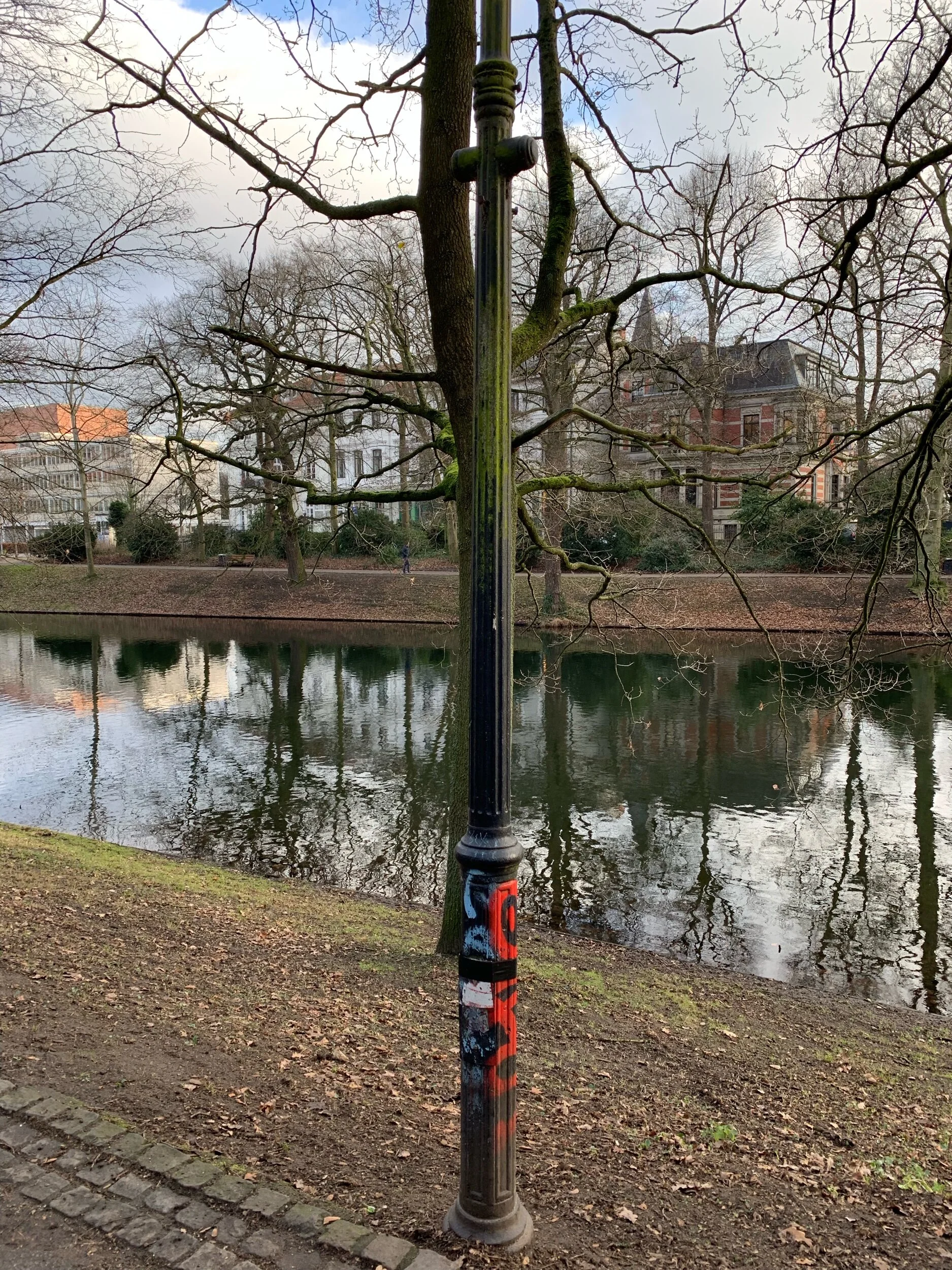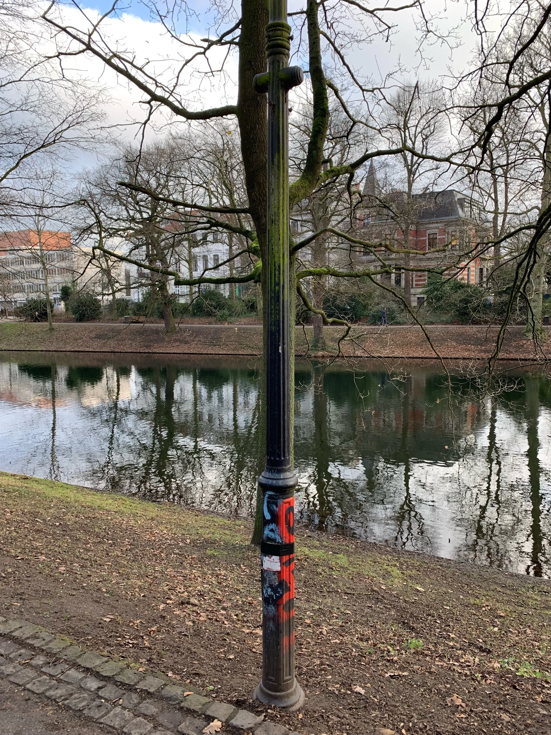 Für ein kleines Experiment stehe ich in den Bremer Wallanlagen direkt vor einem Laternenmast, der einen wenige Meter dahinter stehenden Baum verdeckt.