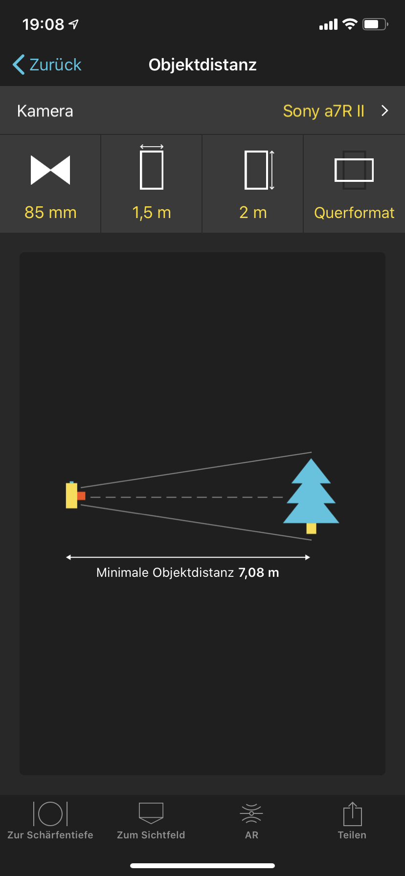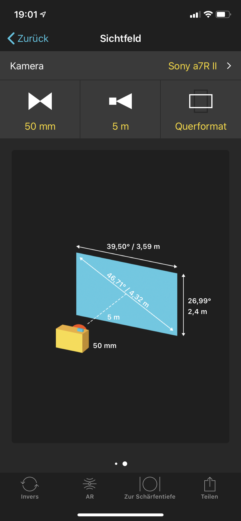 Die App besteht aus mehreren Tools, “Pills” genannt. Darunter sind einige praktische kleine Rechenhelfer u. a. für die Belichtung, die Schärfentiefe oder das Sichtfeld bei verschiedenen Brennweiten und Sensorgrößen.